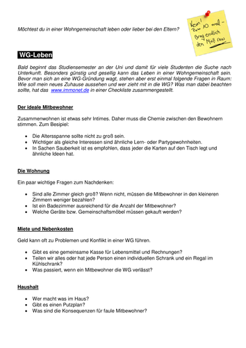 Wg Wohngemeinschaft By Asifkjc Teaching Resources